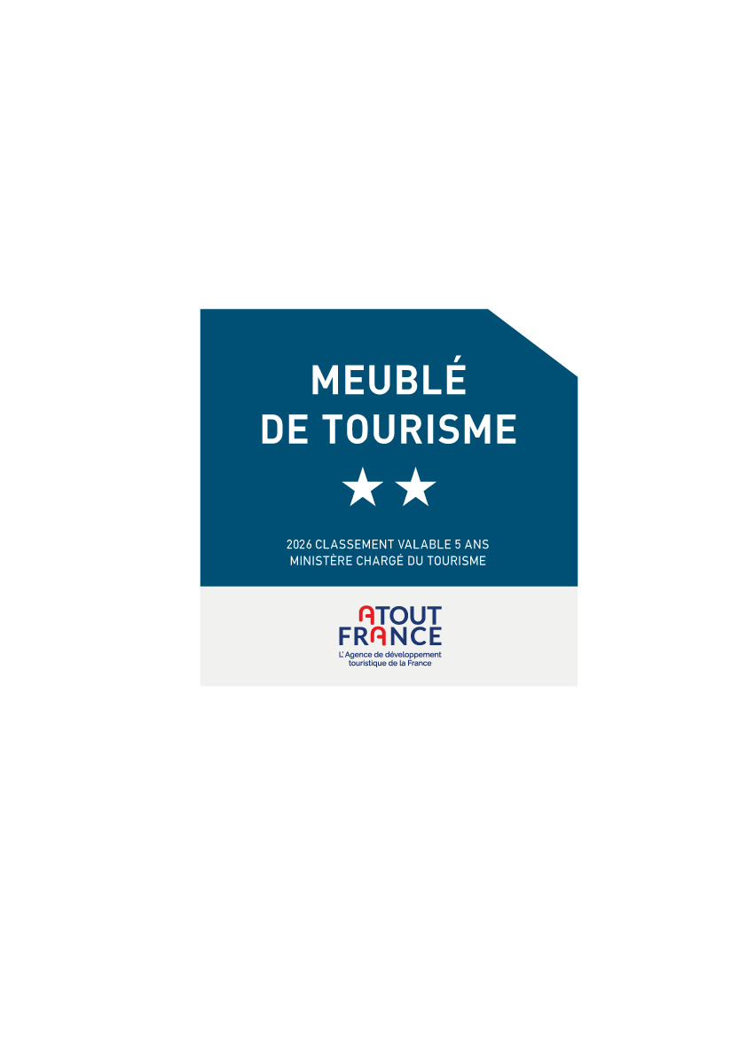 La panonceau de classement Meublé de Tourisme répond à la dernière charte graphique d’Atout France (mise à jour en janvier 2022).